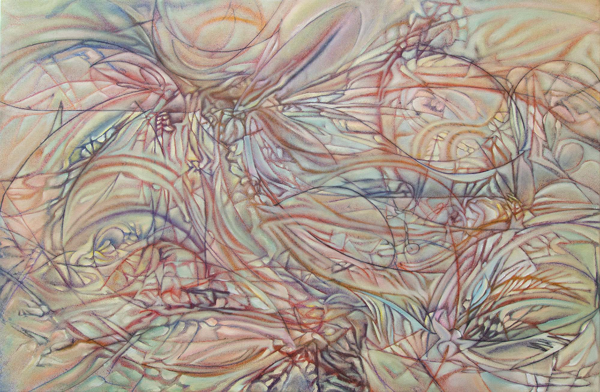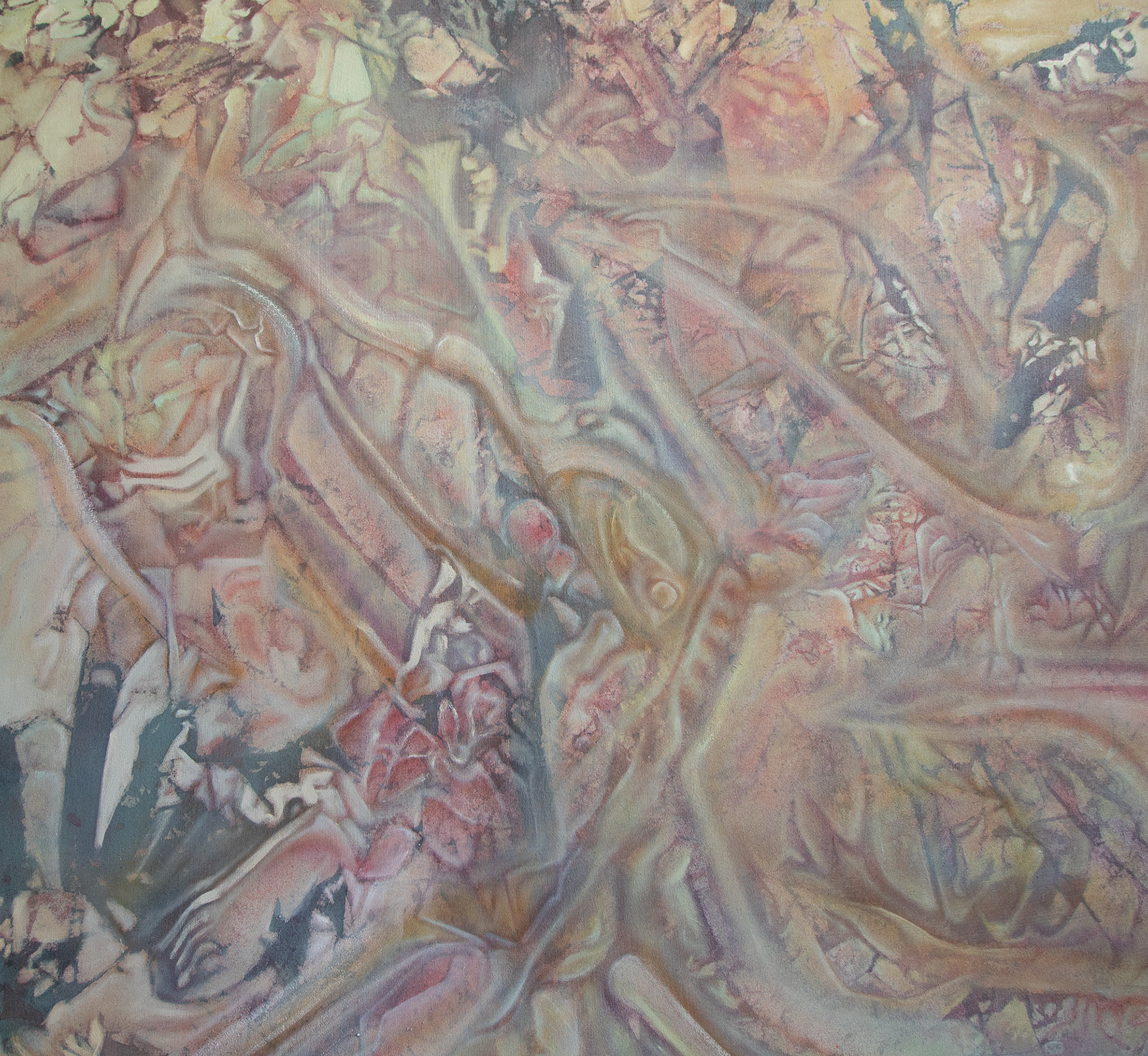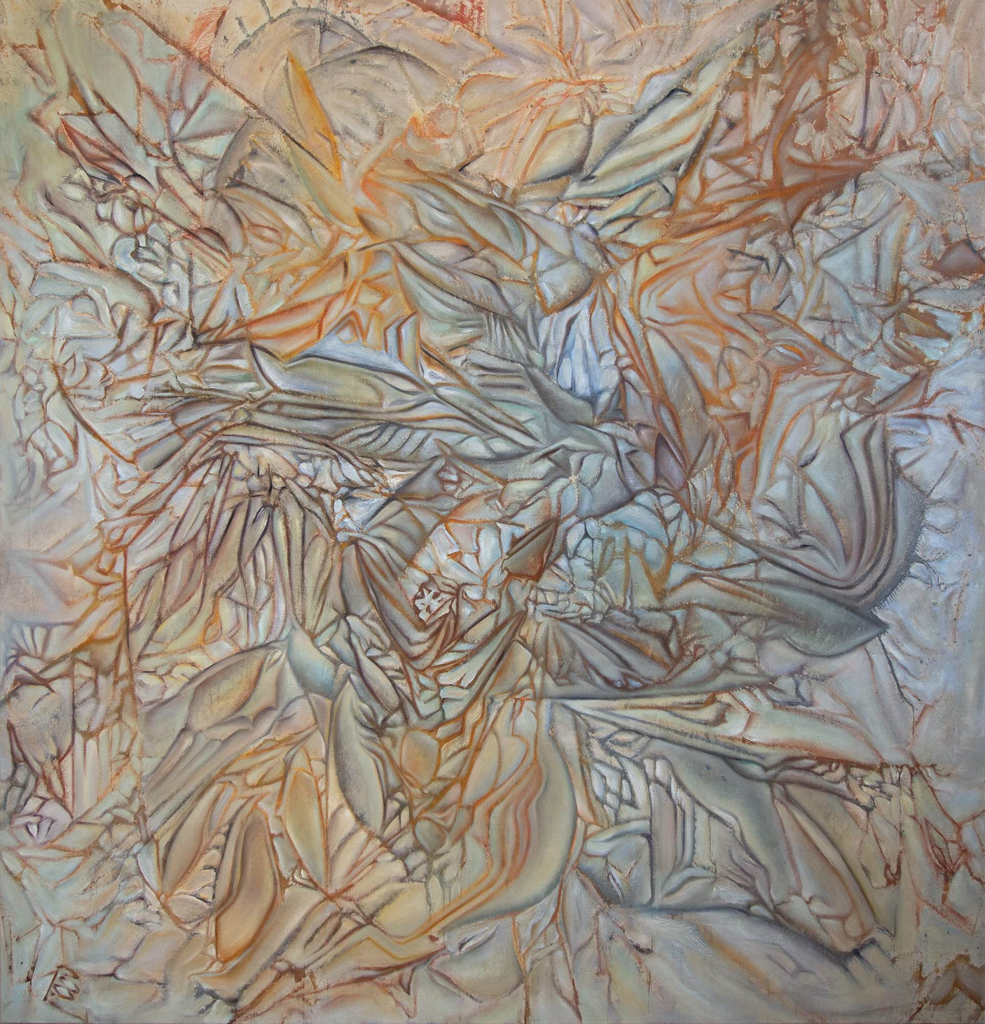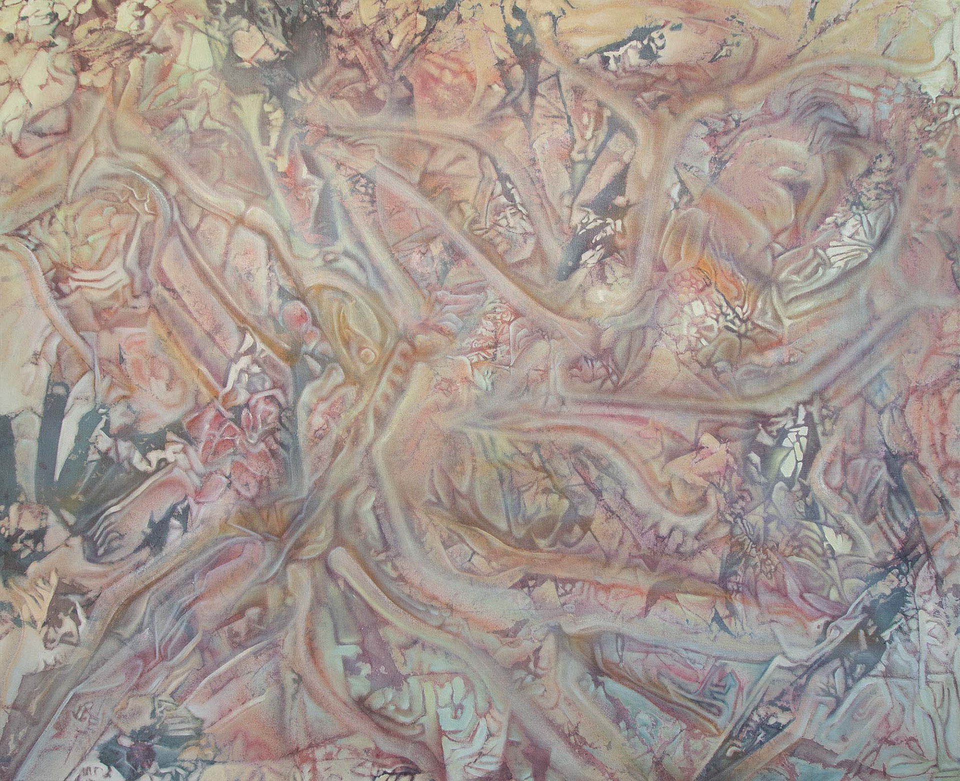 Diagenesis. 2024. Oil, acrylic, spray-paint on canvas. 70” x 86”